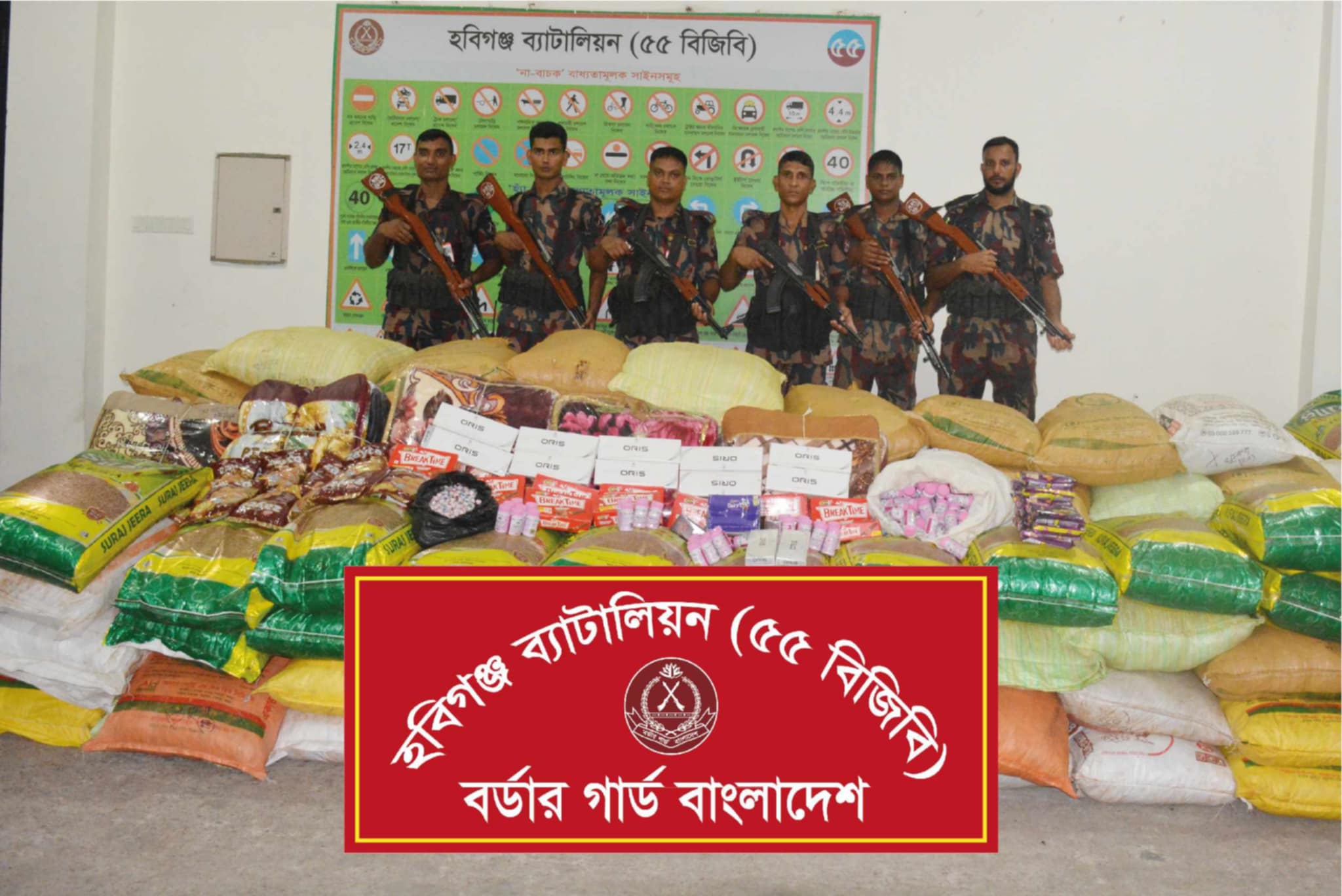 এছাড়াও, হবিগঞ্জ জেলার চুনারুঘাট উপজেলাধীন সাতছড়ি এবং গুইবিল বিওপির টহল দল সীমান্তবর্তী বিভিন্ন স্থানে নিয়মিত অভিযান পরিচালনা করে। এসব অভিযানে তারা ভারতীয় ২২৯টি শাড়ি এবং ৬টি গরু জব্দ করে, যার আনুমানিক মূল্য ২০ লক্ষ টাকা। পাশাপাশি, হবিগঞ্জ জেলার মাধবপুর উপজেলাধীন তেলিয়াপাড়া বিওপি থেকে পরিচালিত চোরাচালান বিরোধী অভিযানে ০৬ বোতল ভারতীয় বিয়ার আটক করা হয়েছে, যার আনুমানিক মূল্য ১,৫০০ টাকা।
