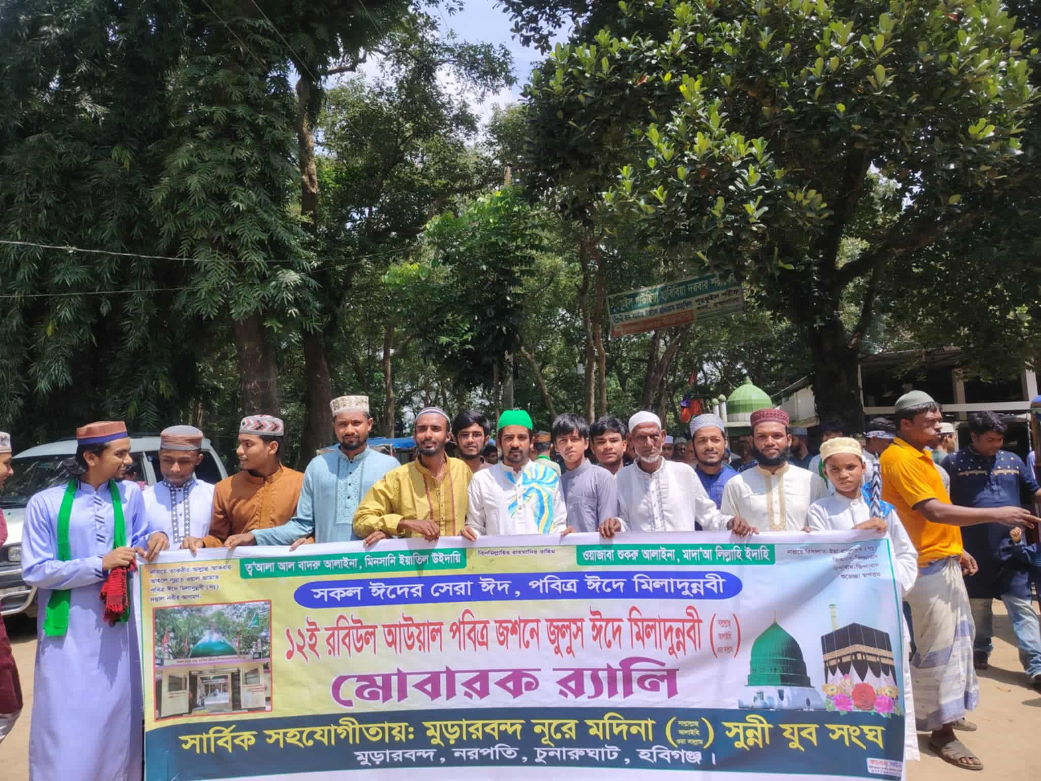 চুনারুঘাটের মুড়ারবন্দ গ্রামের নূরে মদিনা সুন্নী যুব সংঘের উদ্দোগ্যেএলাকার সর্বস্তরের জনগণকে সাথে নিয়ে ঈদে মিলাদুন্নবী (সঃ) জশনে জুলুসের উদযাপিত হয় পরে হযরত সৈয়দ নাসির উদ্দিন সিপাহশালা মাজার প্রাঙ্গণে মিলাদ কিয়াম অনুষ্ঠিত হয় সবার মাঝে মিষ্টি বিতরণ করা হয়।