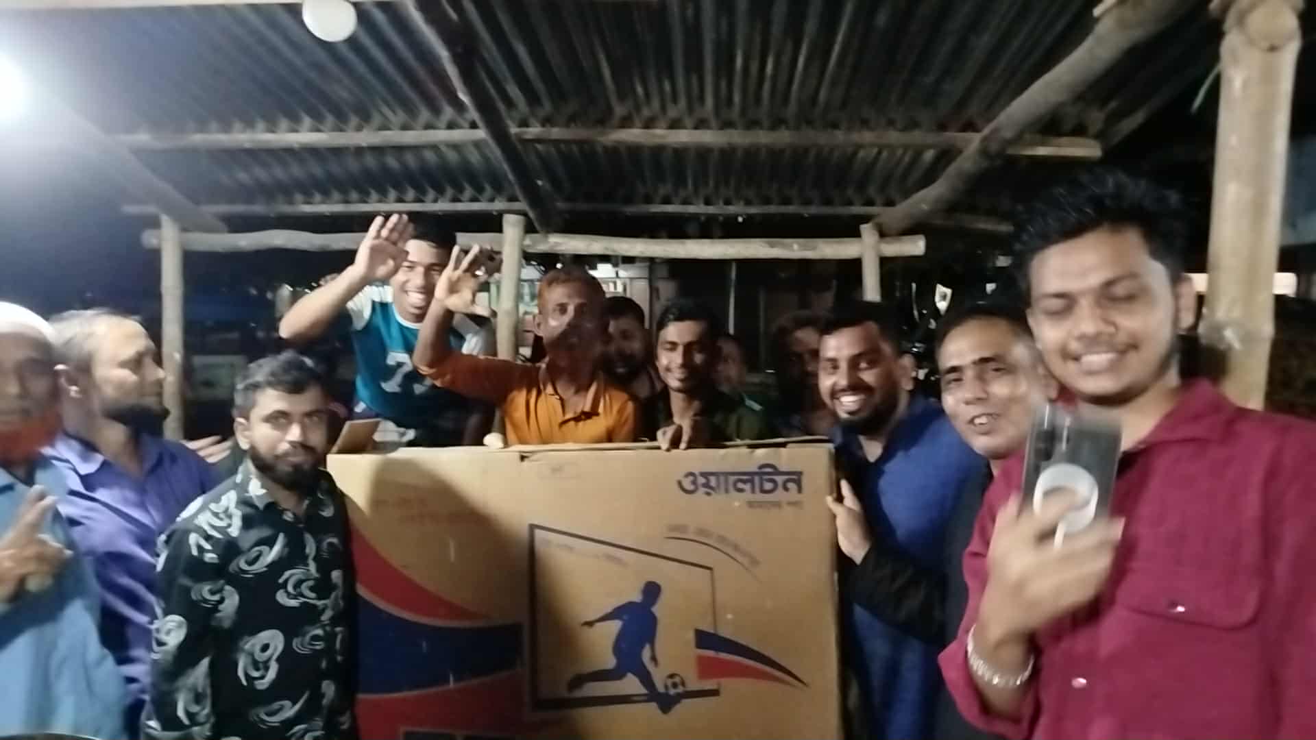 চা দোকানে খেলা দুলা খবরাখবর দেখার জন্য টিভি দিলেন চুনারুঘাট উপজেলা ছাত্রদলের সদস্য সচিব মারুফ আহম্মেদ।