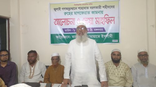 জুলাই বিপ্লবে শাহাদাত বরণকারীদের স্মরনে জামায়াতে ইসলামীর দোয়া ও আলোচনা সভা অনুষ্ঠিত